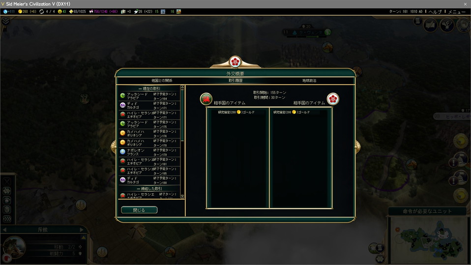 研究協定はCiv4のテクノロジー交換に取って代わったCiv5の新要素です。理解自体は難しくないので、気楽に読んでくださいね。