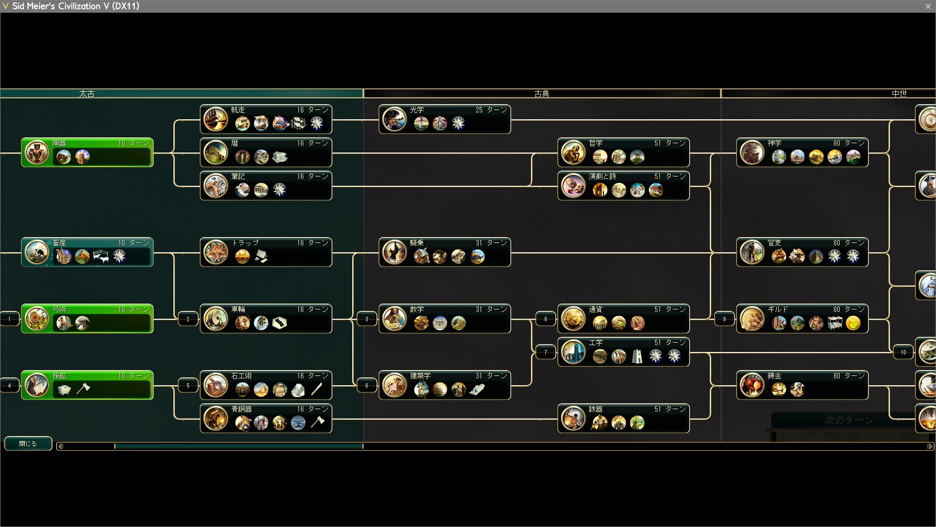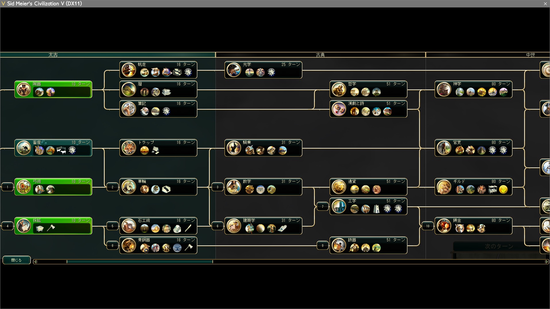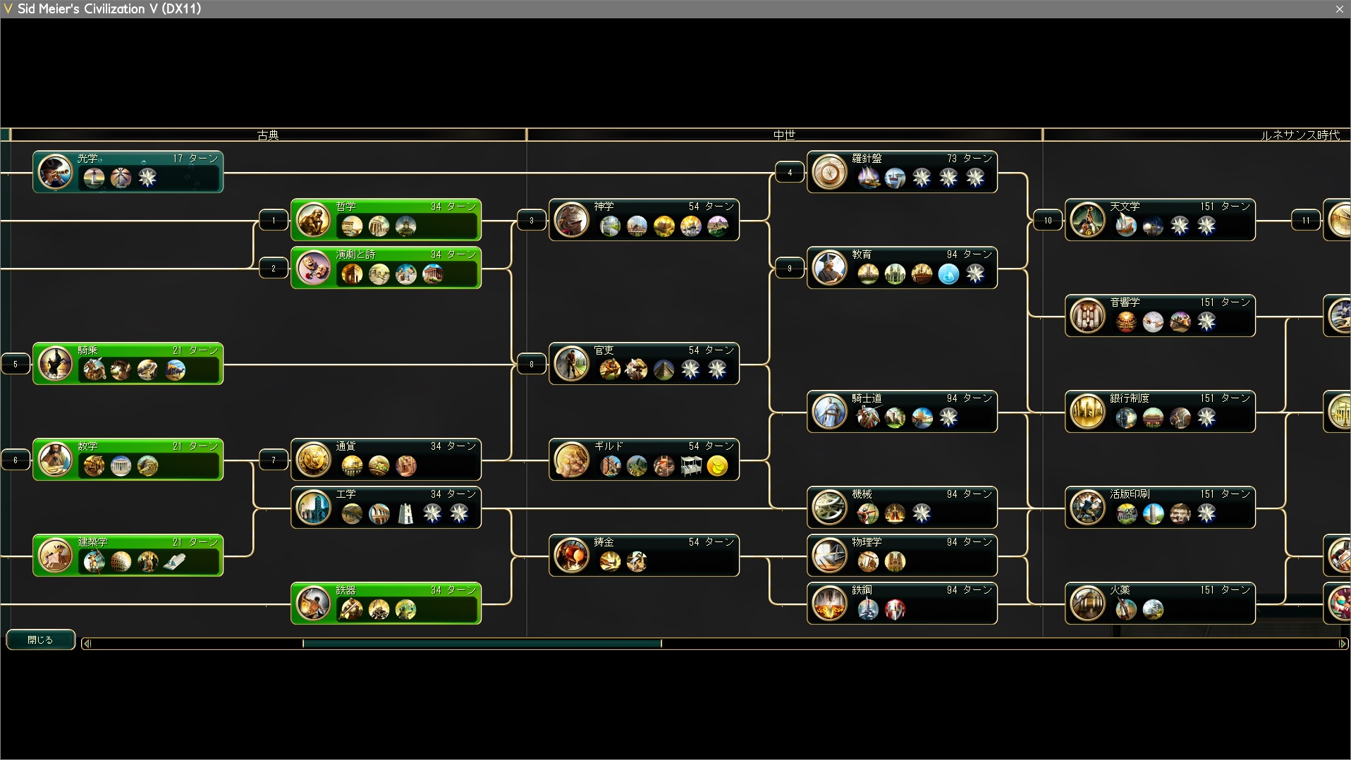 科学勝利最短ルートだが、文化勝利に必須のホテルを解禁する冷蔵技術をスルーしている。が、空港がホテルとおんなじ能力なので問題ないだろう。