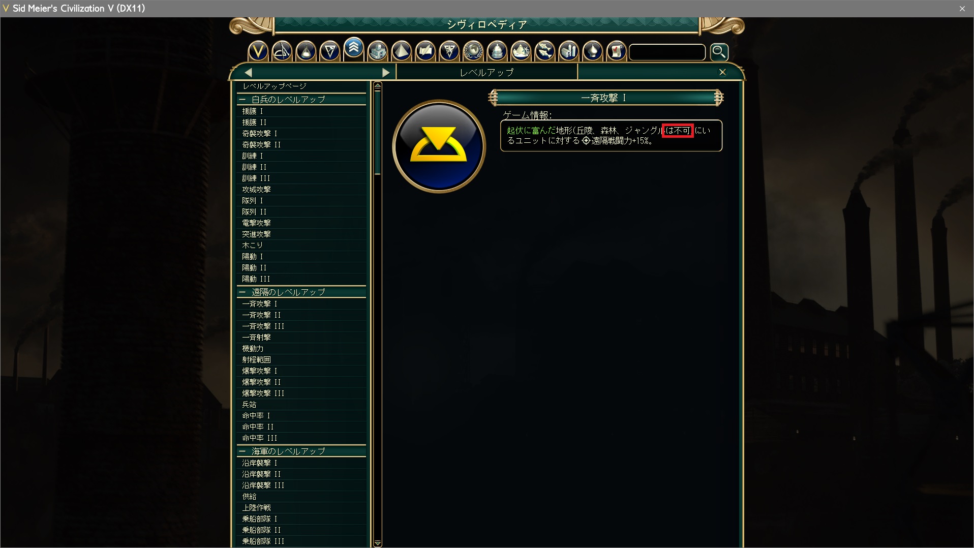 (丘陵、森林、ジャングルは不可) Row Tag="TXT_KEY_PROMOTION_BARRAGE_1_HELP" Row Tag="TXT_KEY_PROMOTION_BARRAGE_2_HELP" Row Tag="TXT_KEY_PROMOTION_BARRAGE_3_HELP" ※BARRAGE = 一斉攻撃 |
