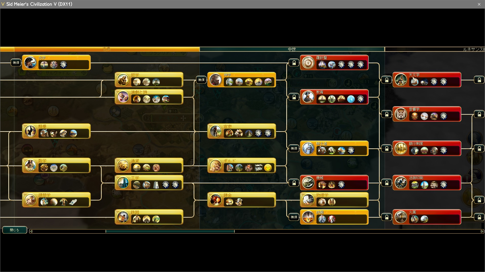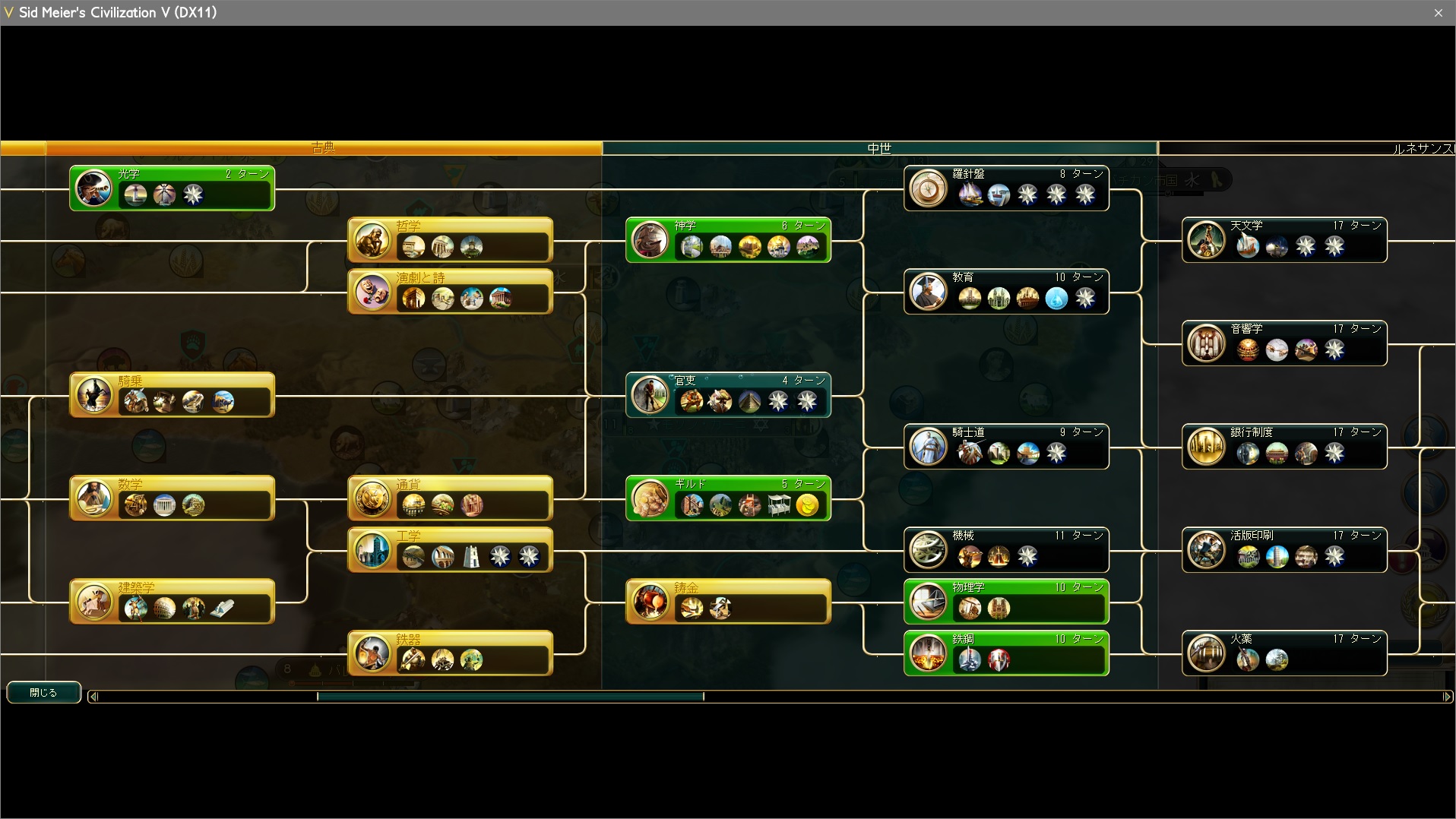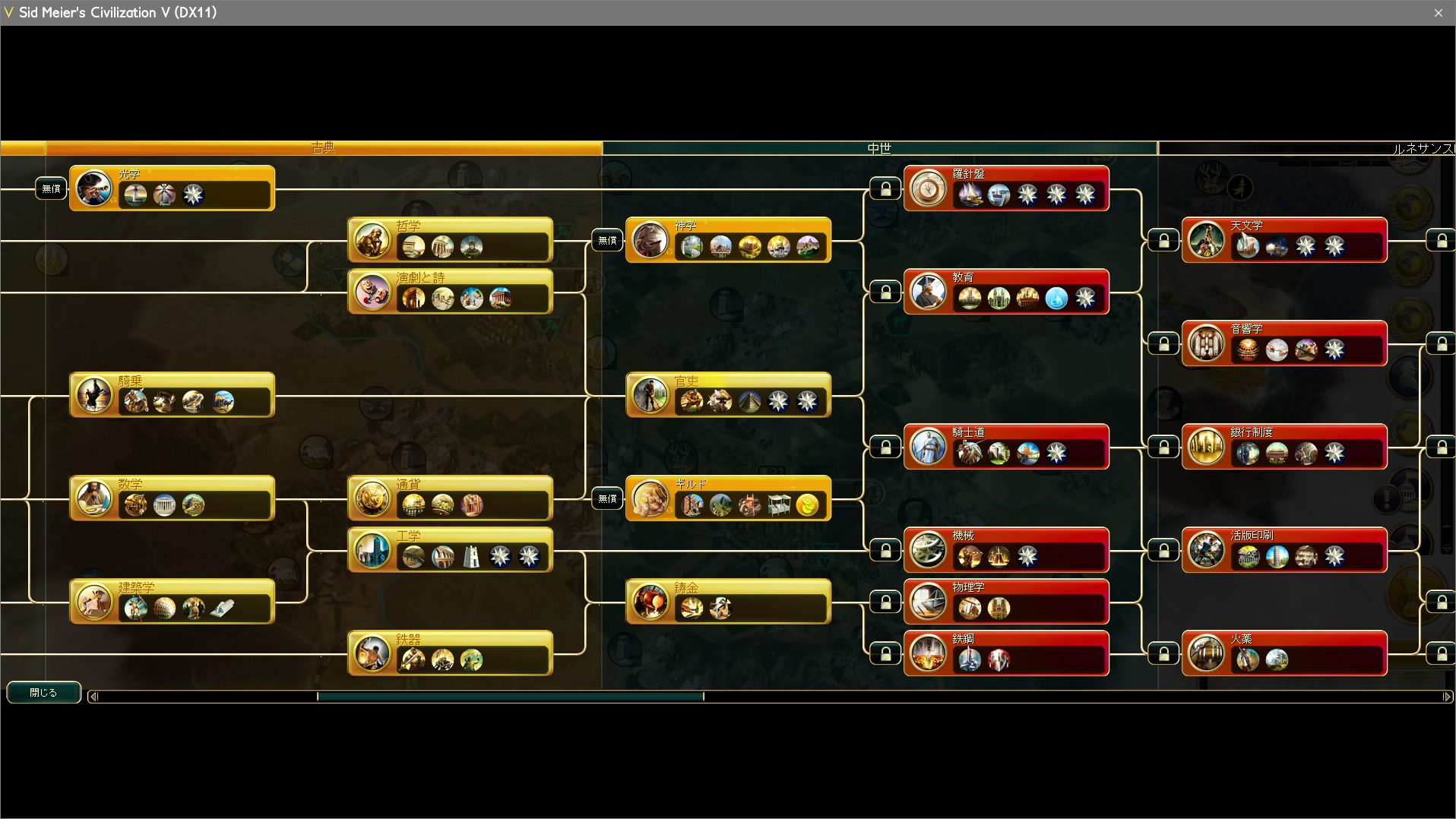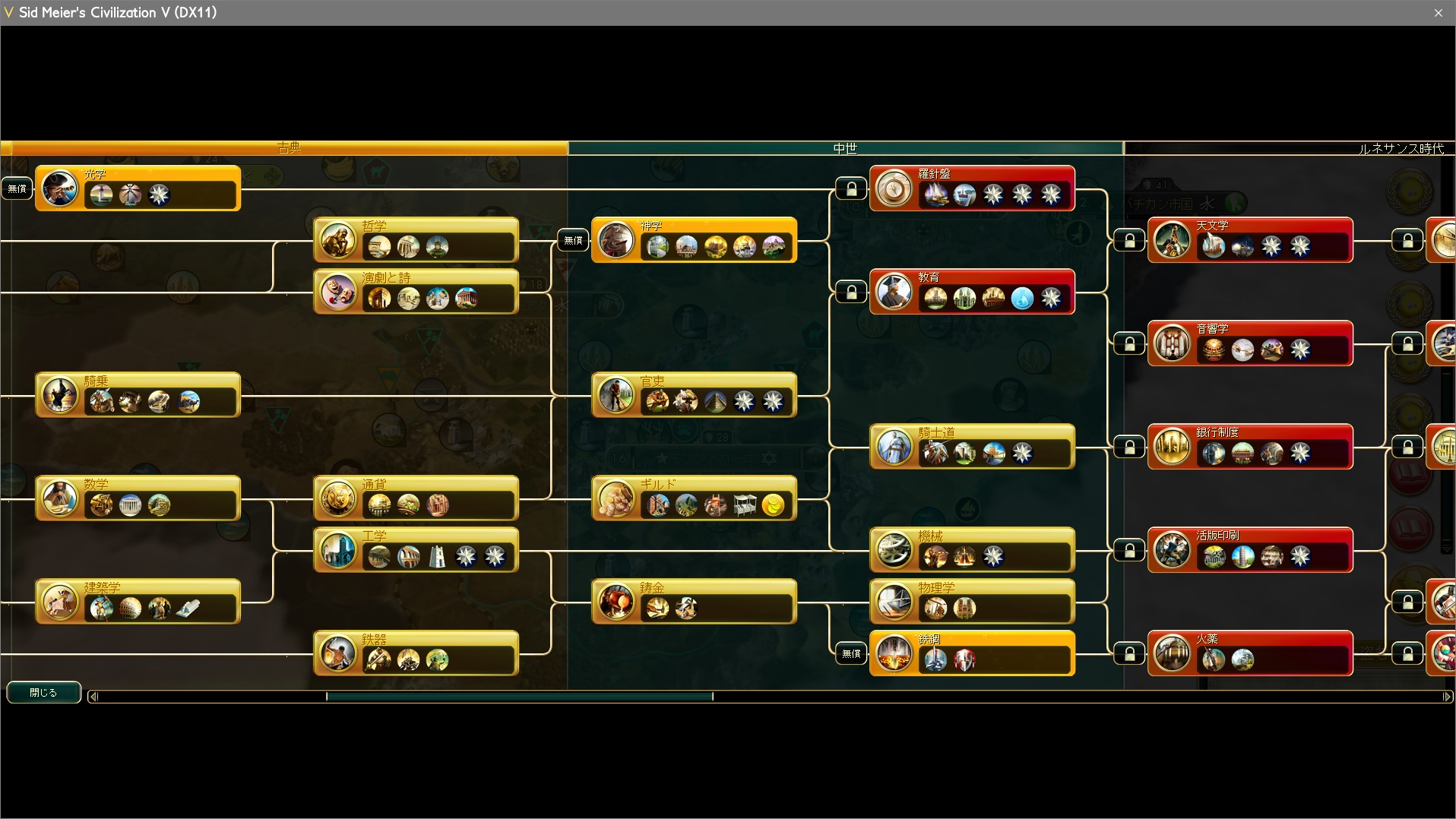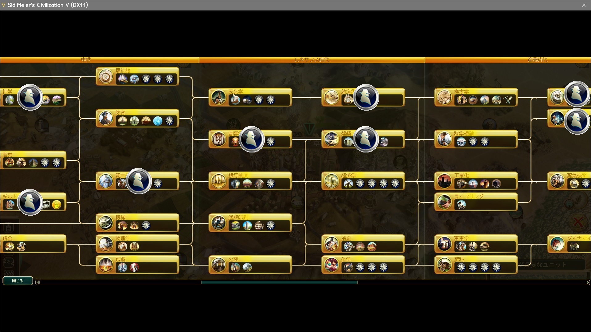 この記事は保存していたセーブデータの中から難易度:創造主で科学勝利が早いものをテケトーに引っ張りだして、ギルド~冷蔵技術までの窃盗を再現したプレイレポよ。