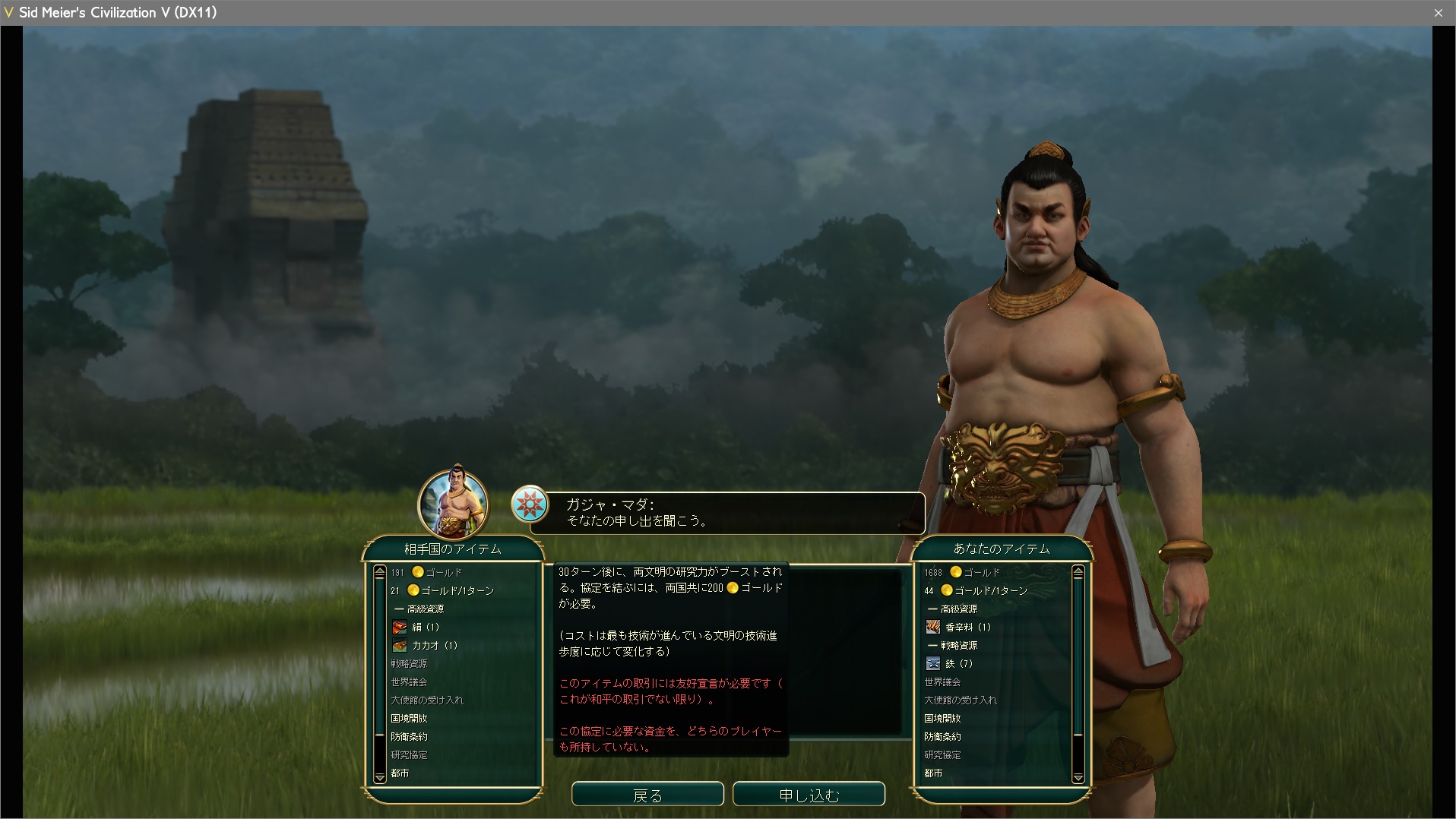 そういう意味では、戦争に負けて滅ぼされそうな内政派なんかも一時しのぎとしてはあり。研究協定の恩恵もしょぼいし、都市が少なければ国立大学が高確率であるわ。