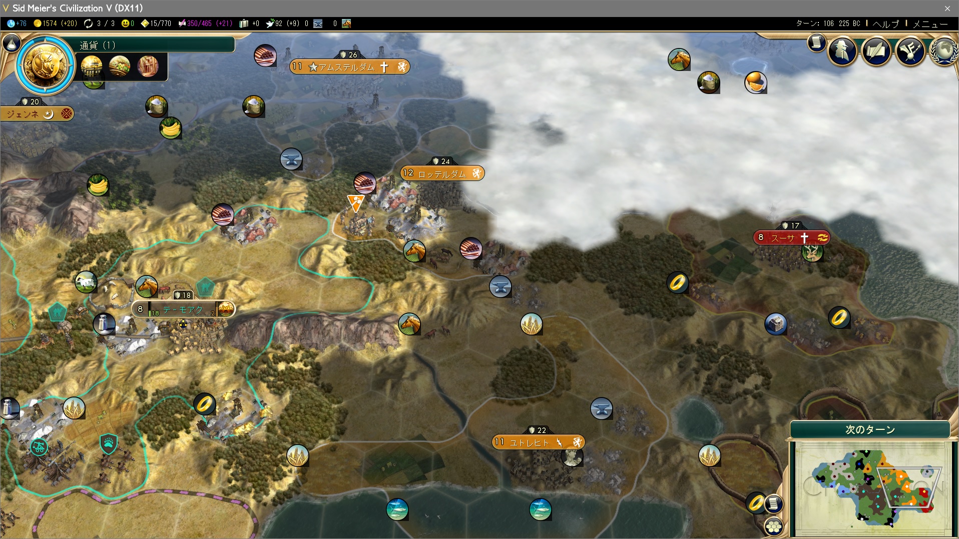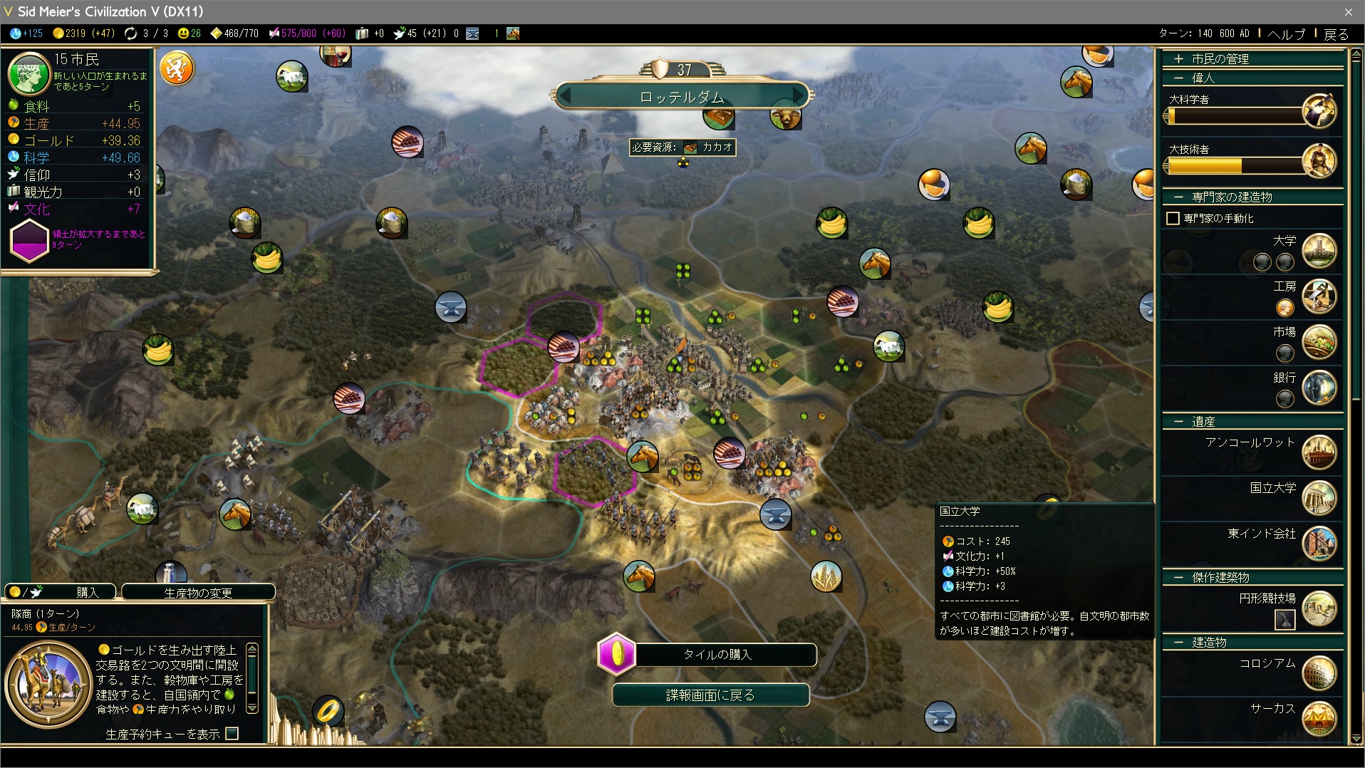 上の画面はオランダ文明を潜伏先に設定し、都市を選ぼうとしている状況よ。(このターンではまだ建っていないけれど)みんなはこの3都市のうち、国立大学がある都市を当てることができるかしら?